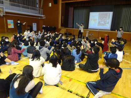 金曜日の2・3時間目に、フリー—ザチルドレンジャパンの方を招いて、ワールドスマイルキッズの発表会を行いました。