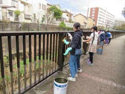 12/19 6年3組の子どもたちの仙川の柵の清掃活動