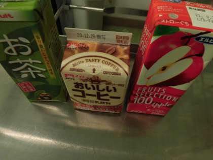 りんごジュース・コーヒー牛乳・緑茶の3種類から、自分の好きな飲み物を選んで飲みました。