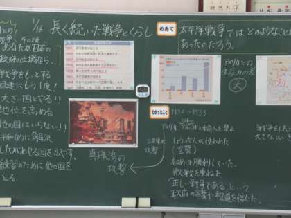 6年生は、今、日本の歴史の授業で、太平洋戦争のことについて調べています。平和について考え理解し、「国際感覚」を養っています。世界平和を願ってオリンピック・パラリンピックは行われます。