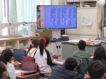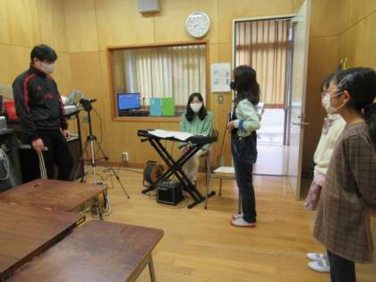 音楽集会は、テレビ放送による集会として定着してきました。今日は、1月の歌の「北風こぞうのかんたろう」と「たきび」の歌をテレビ放送で流して歌いました。また、6年生の児童が、練習したリコーダーの曲を披露してくれました。子どもたちは、そのリコーダーのうまさに驚いていました。
