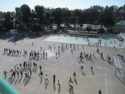 昨日の雪の後、今日は晴天でした。冬晴れの下、長縄跳びの「縄跳び旬間」の最後の日となりました。各クラスで5分間で何人跳べるかの記録を積んできました。最後なので、一番いい記録に向けて各クラス頑張っていました。屋上からは、雪をかぶった富士山と丹沢山系の山並みがはっきり見えました。