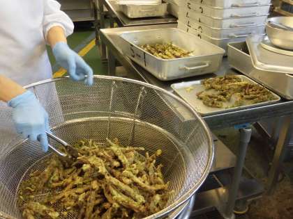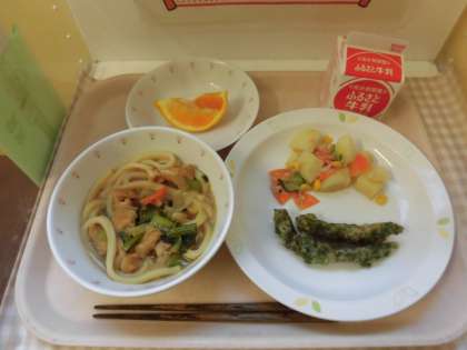 ☆今日の果物は愛媛県のデコポンです。デコポンは清見オレンジとポンカンをかけ合わせて出来た果物で、へたの部分が盛り上がっている所が特徴です。果肉が柔らかく甘味が強いデコポンを皆で食べました。