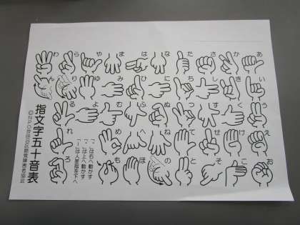総合の学習「手と心で体験しよう」では、手話の先生を招いて手話や指文字を学びました。指文字の「あ」から「ん」までの表し方を教えてもらい、自分の名前を伝え合いました。何度も表しているうちに手指が痛くなってきたり、手の向きや指の本数がこんがらがってしまったりしており、伝わる嬉しさと同時に、伝える難しさを実感したようです。