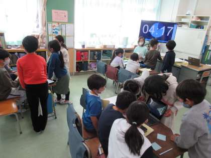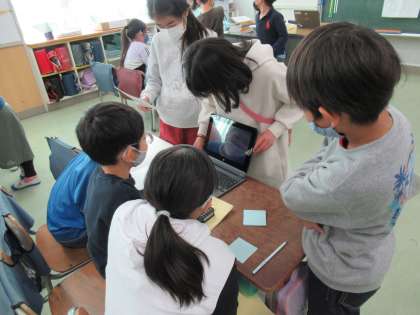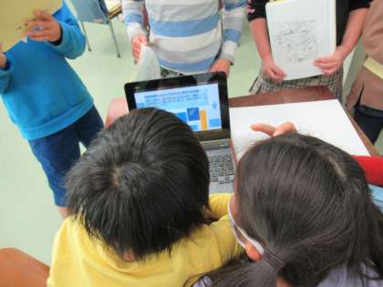そして、今日の5時間目、6時間目にパソコンでまとめたものを学年の友達に向けて発表しました。友達の発表を聞きながら、それぞれが作成したものを真剣に見ていました。