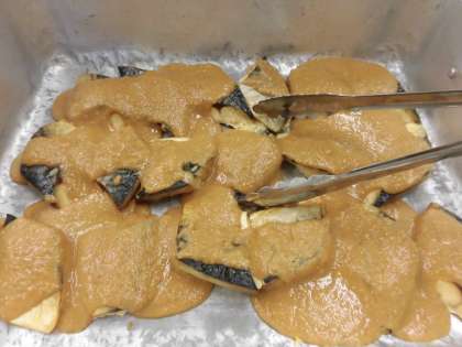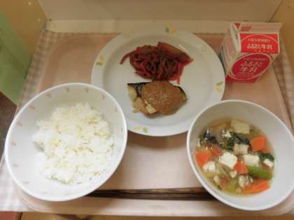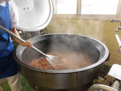 ☆今日の「ピリ辛こんにゃく」は糸こんにゃくを1度茹でて、お湯を煮こぼし、調味料で味をつけて、最後に糸けずり、ごま油を入れました。そして、ごまダレも給食室の手作りです。ご飯によく合う1品に出来ました。