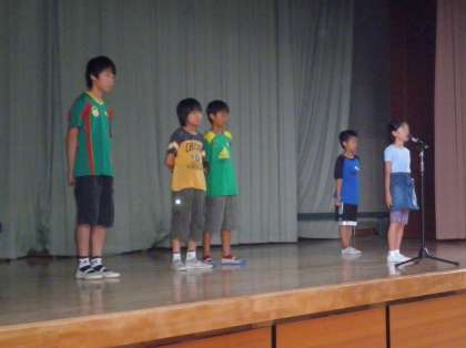 校長先生のお話の後、3年生、6年生の児童代表の言葉です。