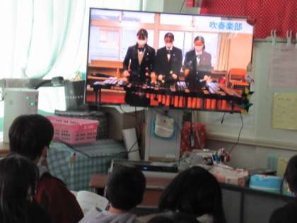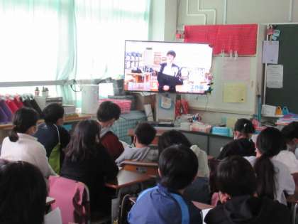 5年生に向けて、「上祖師谷中学校紹介」がありました。本来なら、中学校に行って生徒会からの紹介や部活の紹介があるのですが、コロナ禍ですので、生徒会がDVDを作ってくれました。それをクラスごと視聴しました。とても楽しく観やすく編集されていて、中学校に興味をもったようです。