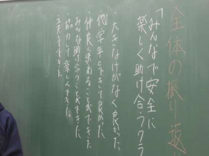 4年生以上のクラブ活動は、今日で終わりました。1年間の振り返りをしました。異学年同士で、自分の好きな活動した1年間で楽しかったことなど、みんなで共有し合いました。