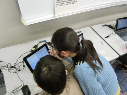 自分の描いた絵を自由に動かしてアニメーションやゲームがつくれることを学び、いろいろなことを試しながら作品づくりに熱中していました。楽しみながらプログラミング的思考を育んでいくことができる素敵な時間になりました。
