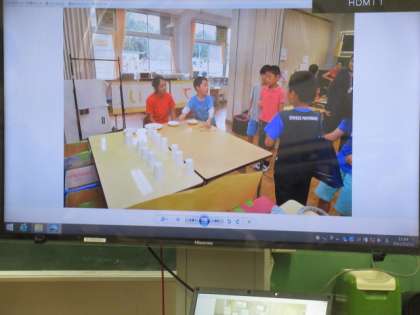 つくし学級は、1年間の楽しかった学校生活を振り返りました。子どもたちは、一人一人楽しかったことを発表しました。そして、次の学年に向けての興味・関心を高めました。