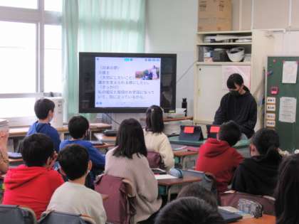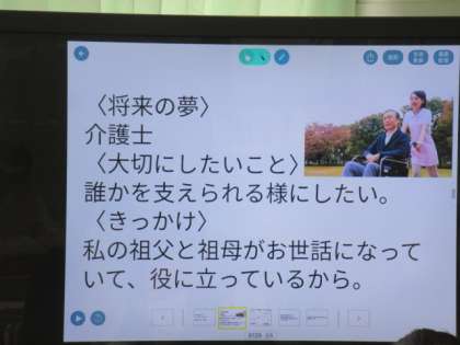 6年生は、自分が将来なりたい職業について調べたことを発表しました。なりたい職業についてよく調べ、iPatを使って発表し、これからの自分の生き方を考えていました。
