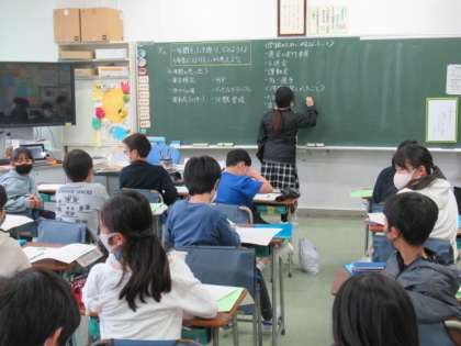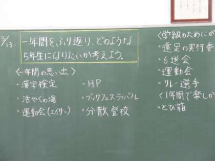 4年生は2分の一成人式です。2組は、10歳までの自分について振り返り、20歳になる自分に手紙を書きました。1,3組は、4年生の1年間を振り返り、5年生への希望をもちました。
