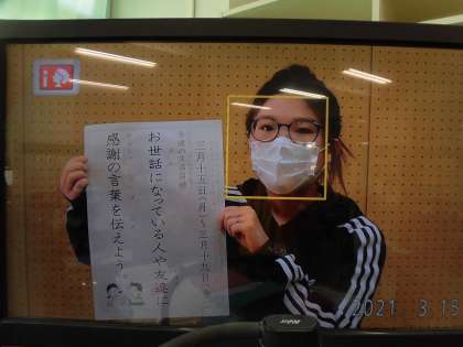 今週の生活目標は、お世話になっている人や友達に感謝の言葉を伝えようです。1年間お世話になったたくさんの人に向けて、言葉で気持ちを伝えましょう。