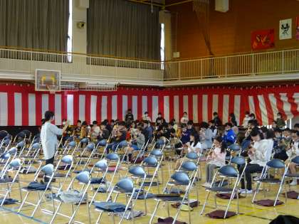 5年生は5、6校時に体育館で威風堂々の収録を行いました。音楽の時間に各学級で練習を進めてきました。学年全体が集まって音を合わすのはなんと今日が初めて!!最初の集まりから5年生のやる気が感じられました。協力して楽器の準備をしていざ本番。今日が初めてとは思えない素敵な演奏で、見に来てくださった先生方や担任一同を感動させました。音楽の内田先生や校長先生からもお褒めの言葉をいただき、子どもたちの顔はさらに生き生きした様子でした。本日収録した合奏は卒業式にながれます。5年生のみんな、お疲れ様でした!とても立派でしたよ!
