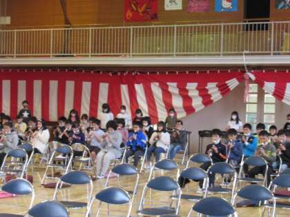 卒業式に向けて、6年生は証書授与の練習と代表の言葉の練習をしました。5年生は、入退場に使う「威風堂々」の演奏を録音しました。卒業式は、昨年度同様、時間短縮、証書授与のみで行います。保護者は2名以内の参加です。5年生は代表の児童の一部参加です。コロナ禍の制限された卒業式ですが、6年生の門出に向けて始動しています。