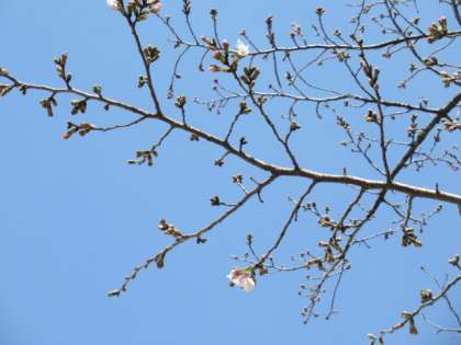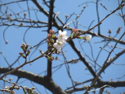 東門にある桜の花が開花しました。まだまだ、少しの花ですが、きっと、25日の卒業式には満開になることでしょう。