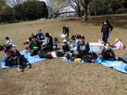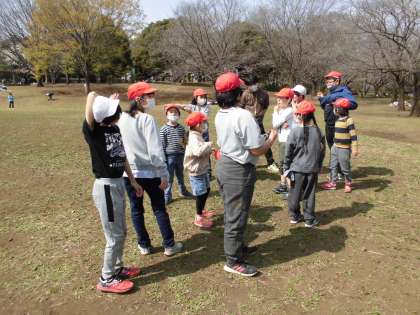 祖師谷公園では、お弁当を食べて6年生が考えた遊びをみんなでやりました。