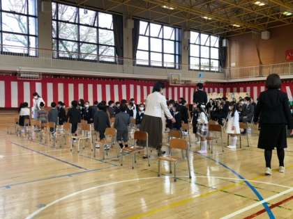 新型コロナウイルス対策として、3回に分けて入学式を実施しました。つくし学級を含めて100名の1年生が入学しました。希望と不安で胸いっぱいのことと思います。みんなで応援しますから、安心して学校に通ってください。