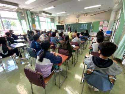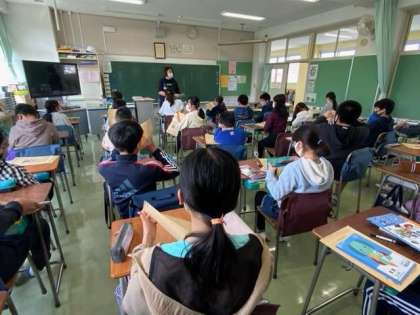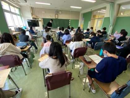 教科書を家庭科室から大事に抱えて運び、配布しています。配布物もたくさんあります。どこのクラスも落ち着いて取り組めています。
