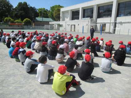 5年生は、3時間目に校庭に集まり学年集会を行いました。