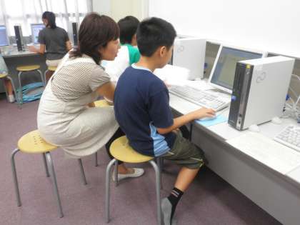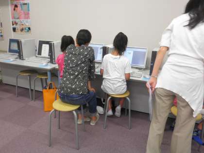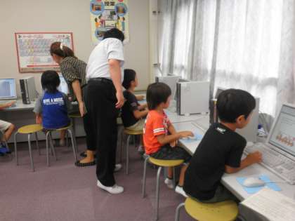 パソコン教室は、暑中見舞いのはがきを作りました。パソコンのいろいろな方法を使って