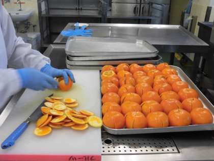 ☆今日の果物は「セミノールオレンジ」です。グレープフルーツとダンシイタンゼリンというオレンジをかけ合わせてできた果物です。見た目は鮮やかなオレンジ色をしています。皮はやや固めですが、果汁たっぷりで、とても甘いのが特徴です。