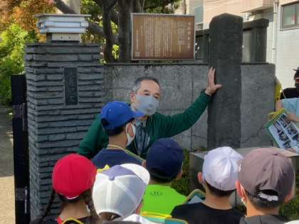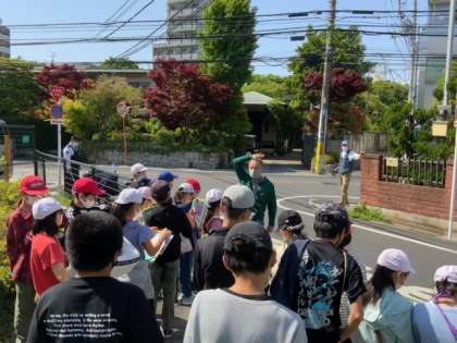 今日も上祖師谷郷土研究会の方々と駐在所のお巡りさんのお手伝いをいただき、6年生が古地名ツアーへ出かけています。甲州街道にある三里塚や六所神社など学校の周辺を巡りました。たくさんのことを学んでいます。