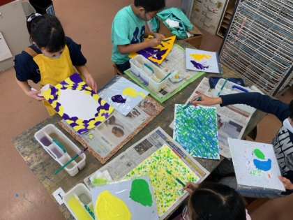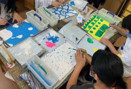 図工で2色の対決という題でそれぞれが作品づくりに取り組んでいます。面白い作品がたくさんです。