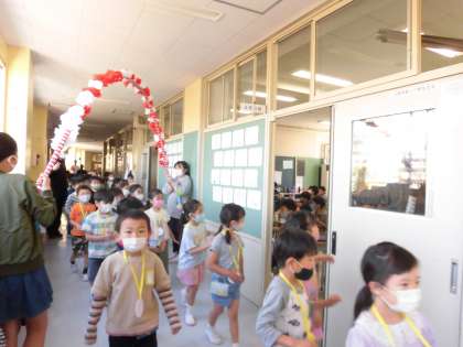 本日は1年生を迎える会が行われ、全校で1年生をお祝いしました。