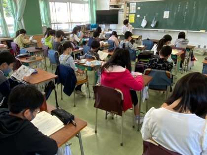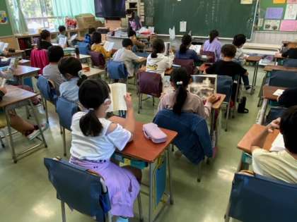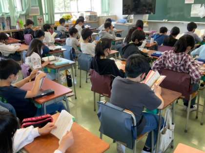 金曜日の朝の時間は、読書の時間です。4年生から6年生の様子です。