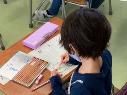 「あいうえお」が頭につくことば探しをしています。全部見つかったら絵もかきます。