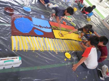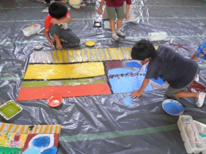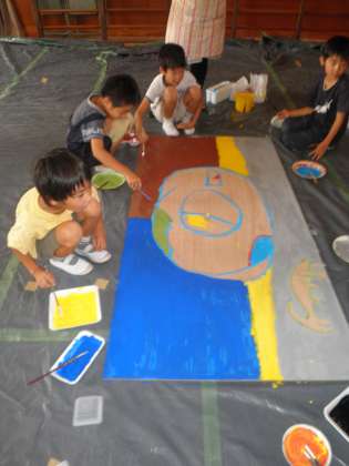 今日は、昨日の下書きをもとに、板に絵を描き始めました。