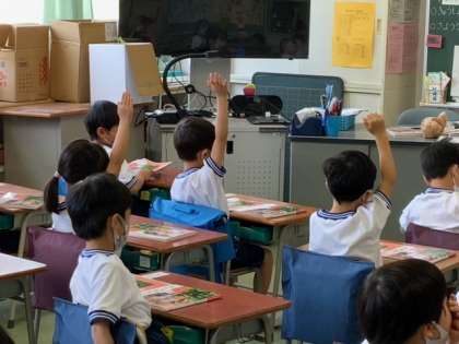 道徳で「ありがとう」「ごめんなさい」をどんな場面で言ったらいいか、言ったらどんな気持ちになるか、言われなかったらどんな気持ちになるかなどを考えています。