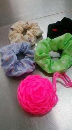 今日も、手芸教室はシュシュ(髪飾り)作りです。早く終わった子は、指あみ(指で毛糸を編む)を教わっていました。