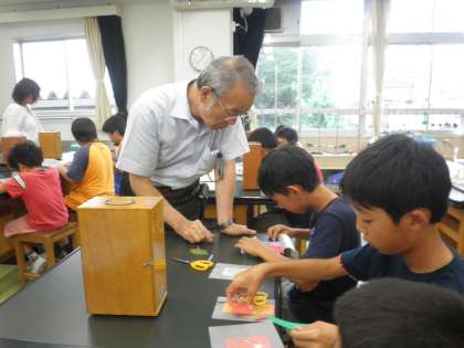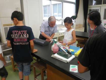 今日の理科実験教室は、一昨日作った葉の葉脈を栞にしました。