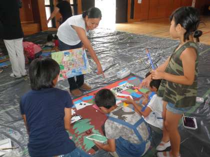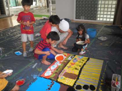 今日で絵画教室の絵は完成です。グループで協力して、楽しい絵が完成しました。