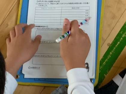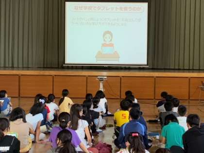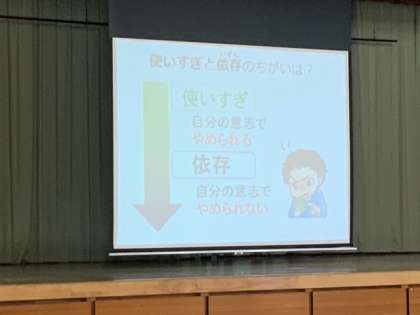 6年生がネットとの付き合い方について学んでいます。一人一台タブレットの時代に応じて、いかにメディアと付き合っていくか考えるよい機会となっています。