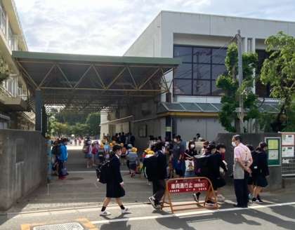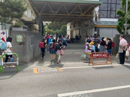 今日からあいさつ週間が始まりました。正門では、6年生が声をかけています。上祖師谷中に通う生徒もよくあいさつができています。