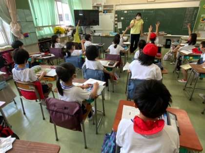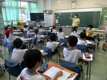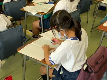 理科の学習で、植物がどのように育っていくか予想する学習をしています。自分の考えたことをノートに書き、発表しています。