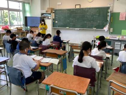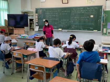 少人数算数では、割り算の筆算の学習をしています。授業のおしまいに振り返りをしています。