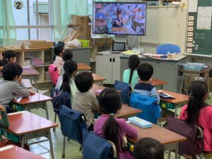 テレビ放送での音楽朝会です。紙コップを使って、曲に合わせて全員がリズムを刻む「カップス」の紹介がありました。3年生と5年生の演奏の様子をテレビで紹介されました。「音楽がもっと好きになった」「やってみたい」という子どもたちの感想が聞かれました。