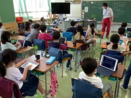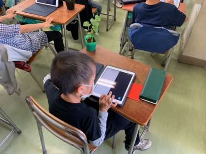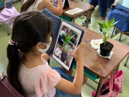 野菜の苗について調べます。写真に撮ってロイロノートを使って保存します。