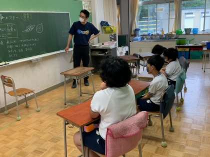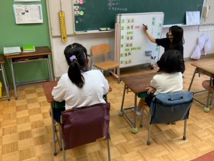 今日の予定や日付、給食のメニューを確認したり、日本の食事について考えたりしています。