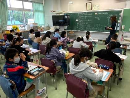 少人数算数では、小数×小数は、どのように計算したらよいかのめあてをもって、学習しています。考えを交流しているコースもあります。