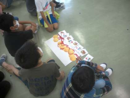 大陸ごとの人口を「このクラスだったら・・・」と人数を分け、大陸ごとにオリンピックの金メダル獲得数や食料のこと、お金のことを考えました。予想した数より少なかったりとても多かったりすることに驚いていました。