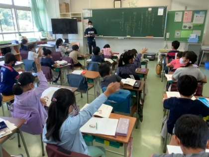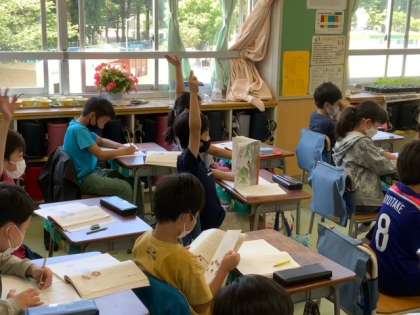 国語の「こまを楽しむ」では、問いや答えがどのようにかかれているか、めあてをもって学んでいます。