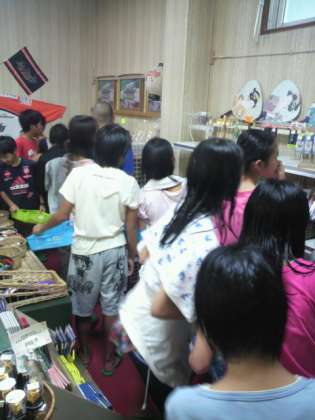 宿舎に戻って、お風呂に入り、お土産を買っています。