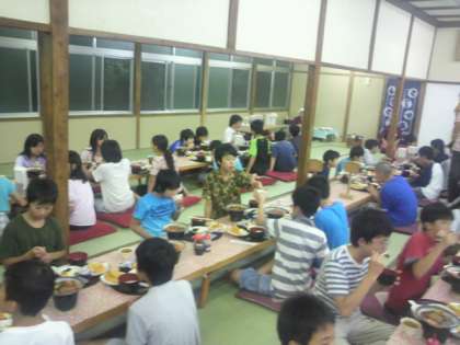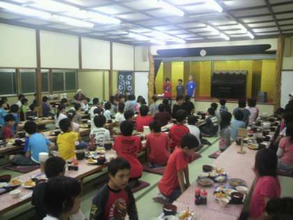 今、雨が降っているので、キャンプファイヤーは、中止で室内レクになる予定です。