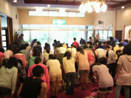 校長先生のお話、宿舎の方のお話を頂き、全員で宿舎の方にお礼をしました。